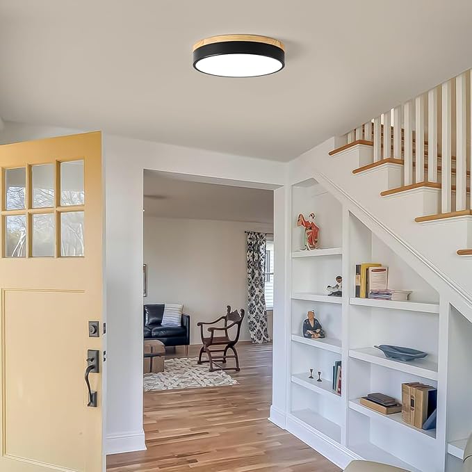 • Dimmable & 5 Color Temperatures: This wooden ceiling light lets you adjust brightness from 10%-100% effortlessly, plus switch between 5 color temps (2700K-6000K) via the control around the LED lens. Works with both dimmer switches and regular switches(Dimmer/switch not included)
