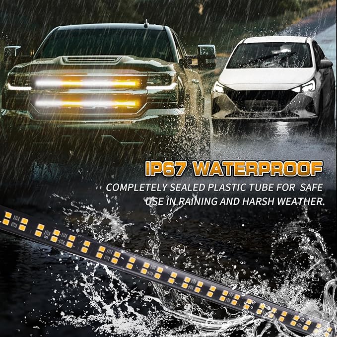 • 【MAKE YOU STAND OUT】This 2 in 1 led grill lights strip are equipped with 288 high brightness LEDs. Even during the daytime, the truck lights are bright and noticeable to the driver and effective for any warnings and emergencies.