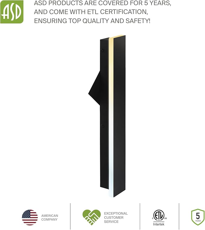 ASD LED 24" Long Wall Mount Light Fixture, Outdoor & Indoor Linear Sconce | 3CCT, Dimmable, Waterproof, Anti-Rust, ETL Listed | 24W 1500LM 3000-5000K 100-277V | Exterior Porch Lighting | Black