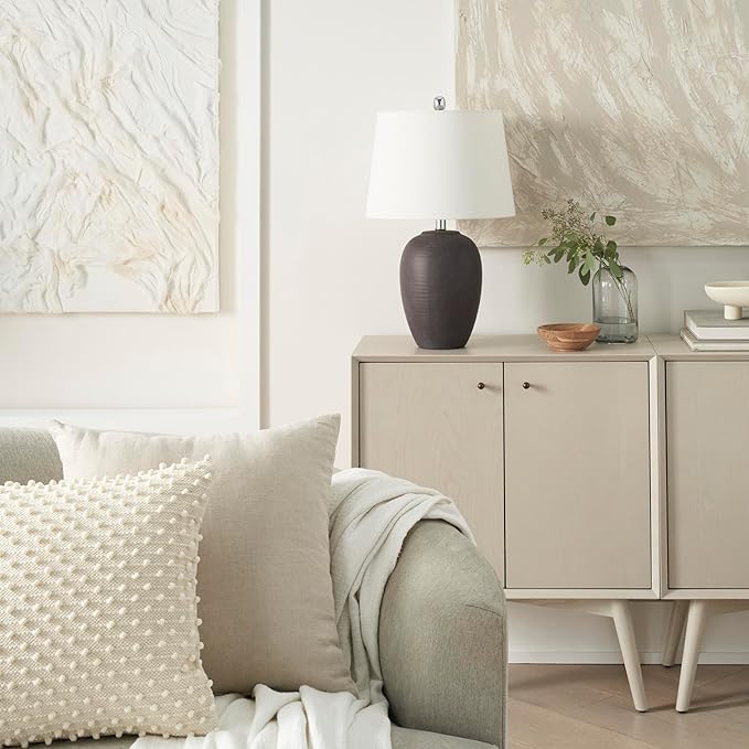 Nourison Home 23" Dark Purple Distressed Ceramic Pot Table Lamp for Bedroom, Living Room, Dining, Office, with White Shade