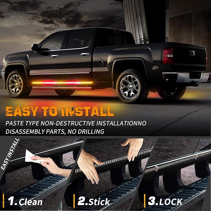 • Included Components : 2x 60 inch Amber and Red Running Board Light Strip