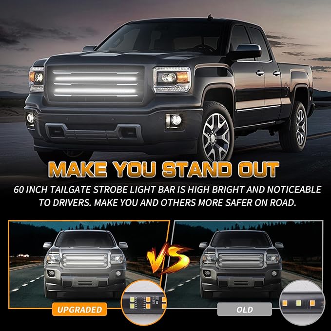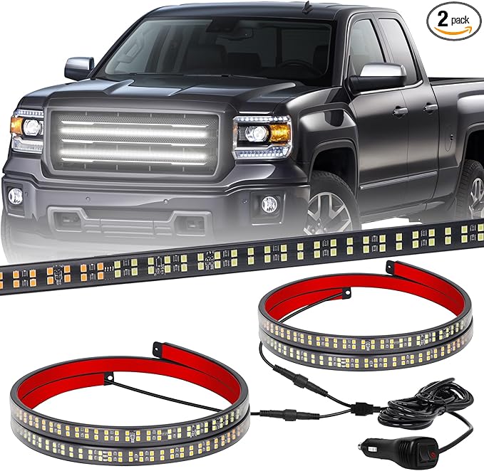 • 【MAKE YOU STAND OUT】This 2 in 1 led grill emergency lights strip are equipped with 288 high brightness LEDs. Even during the daytime, the fire-fighter truck lights are bright and noticeable to the driver and effective for any warnings and emergencies.