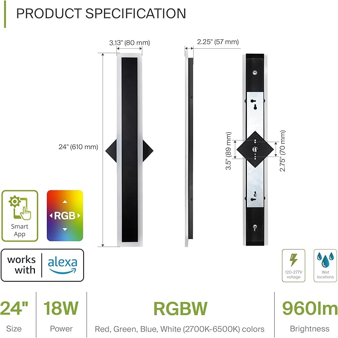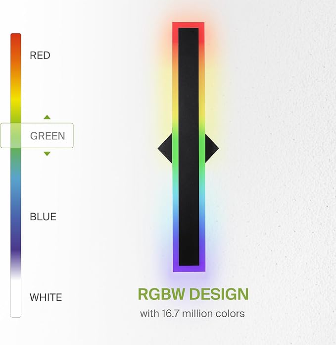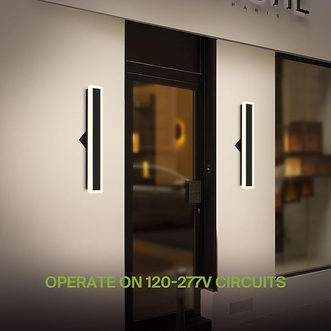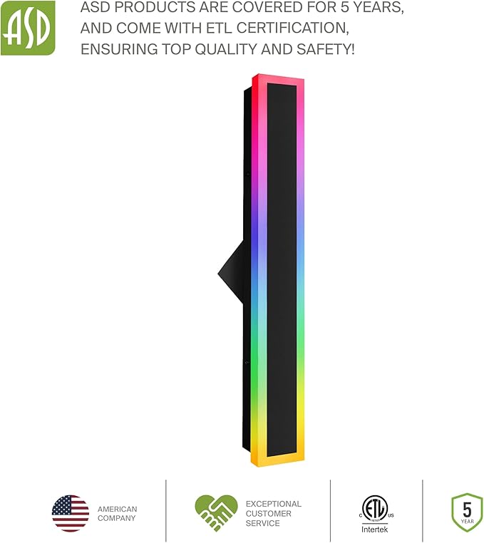 ASD LED 24" Long Wall Mount Light Fixture, Outdoor & Indoor Linear Sconce | RGBW, Smart, Waterproof, Anti-Rust, ETL Listed | 18W 900LM 2700-6500K 100-277V | Exterior Porch Lighting | Black, 2 Pack