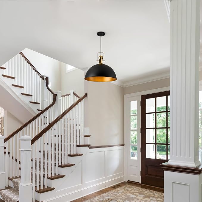 • [Industrial & Vintage Design]: 1-Light industrial farmhouse pendant light fixtures with adjustable cord, mattle black finish featuring retro-style dome shade, this antique pendant lighting is made of sturdy metal construction in black finish and inner gold finish.The vintage pendant lights is ideal for home, dining room, kitchen island, warehouse, entryway, corridor, restaurant, cafe, bar, club, barn, working bench.