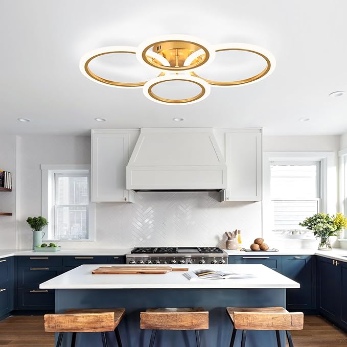 • MODREN DESIGN - The gold modern ceiling light consists of 4 acrylic circles, more three-dimensional than other ceiling lights. blending perfectly with the ceiling, not only satisfying the lighting requirements, but also a beautiful ceiling decoration.