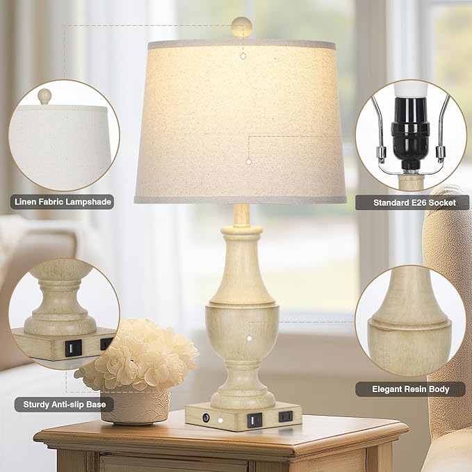 • Farmhouse Rustic Vintage Lamps: Crafted from antique-style white washed resin with fabric lampshades, showcase unique vintage textures for a charming retro appeal. The classic boho design adds elegance and sophistication to home space, seamlessly blending with Nordic, minimalist, country, and simple interior styles. Ideal for end tables, desks, bedside sofas, and dressers!