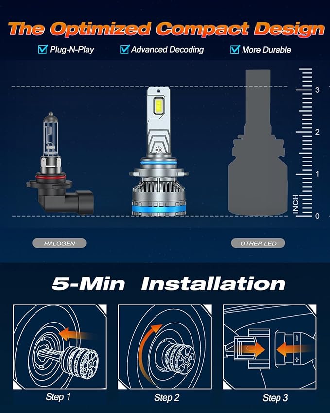 • Effortless 10-Minute Installation: Crafted to closely mimic factory halogen bulbs, these 9006 bulbs offer a seamless plug-and-play experience. They come equipped with an additional decoder for enhanced performance, ensuring quick and hassle-free installation in just 10 minutes.