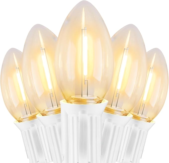 • Old Fashioned Appearance and Dimmable: White wire C9 LED Christmas lights follow the shape of old fashioned bulbs with warm white lighting effect, creating a warm, harmonious and comfortable atmosphere, lighting up your life and creating exclusive memories for you