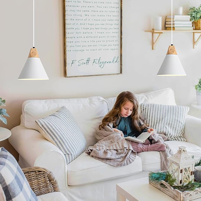 White Pendant Light, 2 Packs 9.4inch Farmhouse Pendant Light, Kitchen Pendant Lights, Pendant Lights Kitchen Island for Living Room, Bar, Bedroom, Office