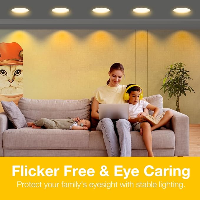 • Zero Flicker and Eye Caring Design: Protect your family's eyesight with our BR30 LED light bulbs featuring stable electronic components that ensure a zero flicker. No from harmful UV or IR radiation, these BR30 LED Bulbs 65 W prioritize eye comfort, preventing eye fatigue and providing instant. Enhance your home's overall well-being with our dependable and eye-friendly lighting solution, ideal for any area where extended periods of exposure to artificial light are common.