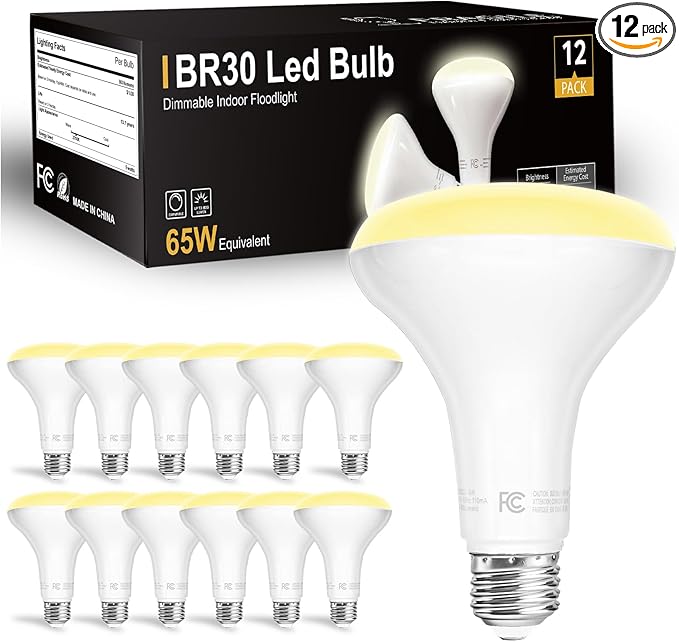 • BR30 LED 2700 K Dimmable Flood Light Bulbs: Elevate your ambiance with our BR30 LED light bulbs 65W that offer smooth,Zero flicker. These soft warm white light bulbs perfectly suit any mood or decor,making them ideal indoor flood light bulbs 2700 K for recessed lighting, enhancing reading or working environments,and creating cozy atmospheres during meals.Upgrade your can light bulbs with superior dimming capabilities today.