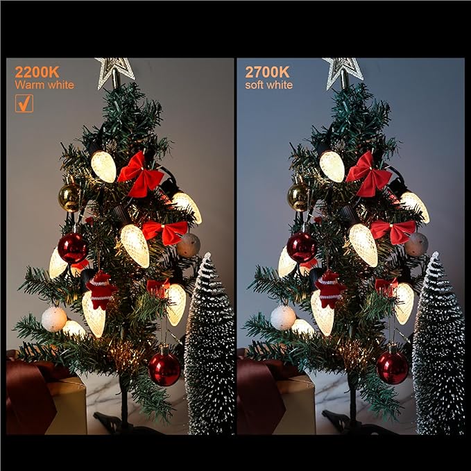 • 【2200K Warm White】 2200K warm white provides vivid and rich color, is very suitable for the environment to decorate the illumination, has the better color and the brightness consistency than the C9 incandescent bulb.