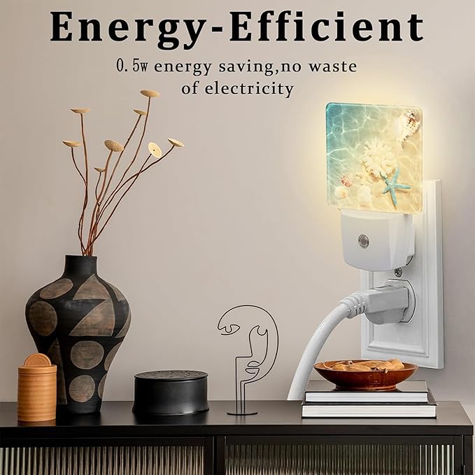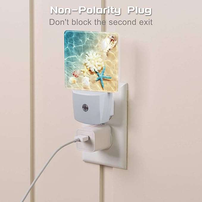 Starfishs Seashells and Coral Night Light, Summer Beach Sea Water Marine Life Dusk to Dawn Night Light Plug in,0.5w Energy Saving Sleep Friendly NightLight for Kids Boys Girls Home Decor