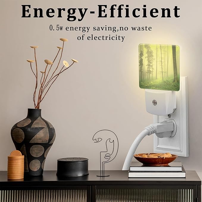 Misty Forest Night Light Plug into Wall, Magical Foggy Fairy Tale Forest Dusk to Dawn Night Light,0.5w Energy Saving Sleep Friendly Nightlights for Kids Boys Girls Home