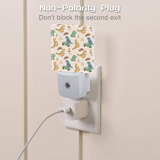 Cute Cartoon Dinosaurs Night Light for Kids, Funny Dino Car Truck Night Light Plug in with Dusk to Dawn Sensor, 0.5w Energy Saving Sleep Friendly Nightlight for Hallway Stairway Kitchen Bedroom