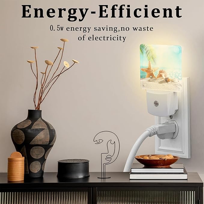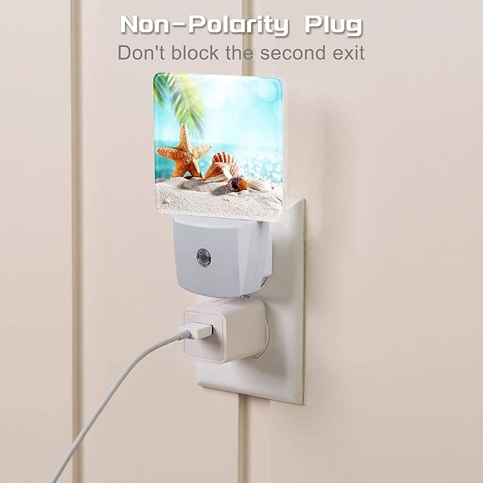 Starfish Seashells on Sand Night Light Plug into Wall, Summer Tropical Beach Ocean Dusk to Dawn Night Light Plug in,0.5w Energy Saving Sleep Friendly NightLight for Kids Boys Girls Home Decor