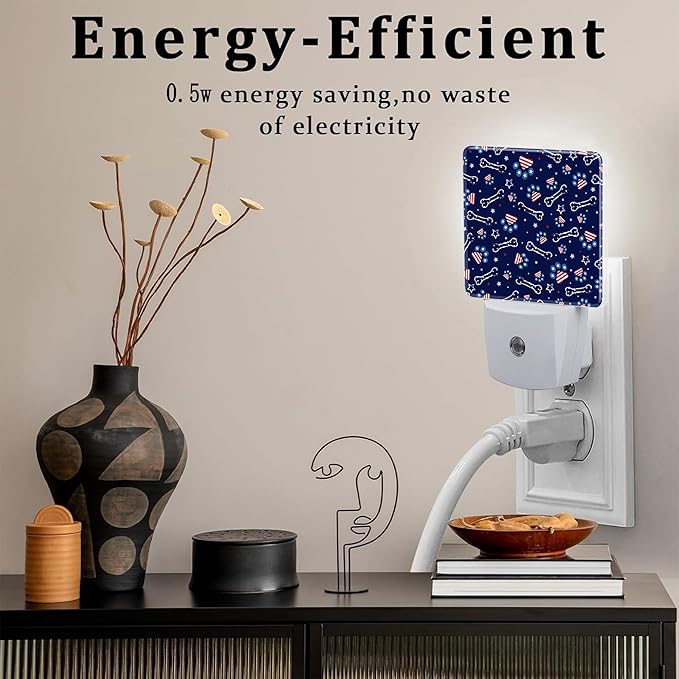 USA Flag and Paw Prints Night Light Plug into Wall, Cute American Patriotic Dog Prints Dusk to Dawn Night Light Plug in,0.5w Energy Saving Sleep Friendly NightLight for Kids Boys Girls Home Decor