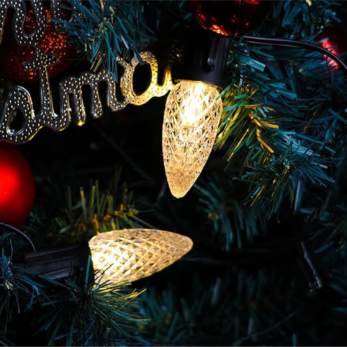 • Unique Design: Diamond faceted bulb design reflects a spectacular light. This C9 LED Bulb shell are made of weather resistant and break resistant acrylic resin