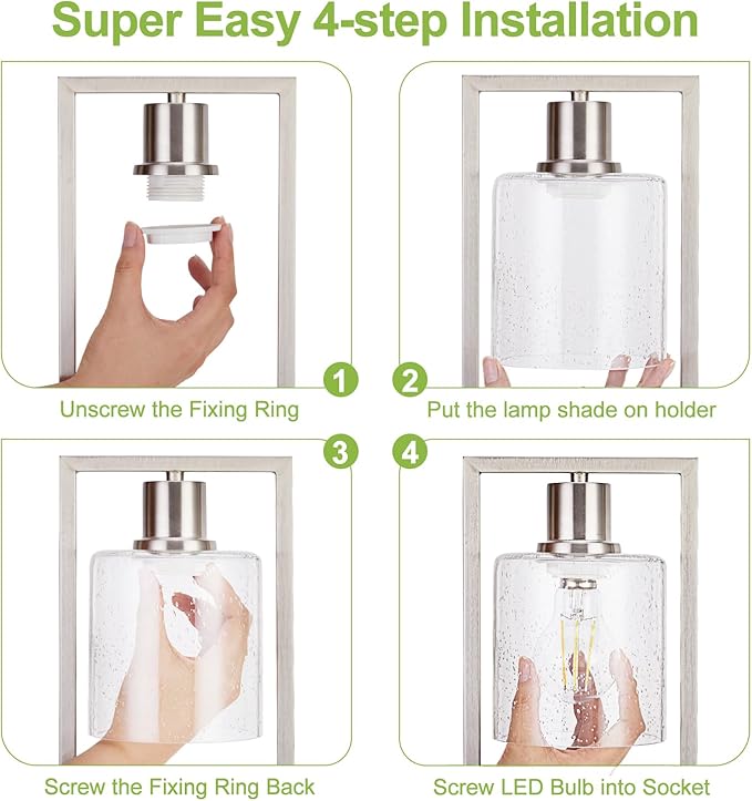 • 【Seeded Glass Shade & LED Bulb Included】Coming with A19 dimmable LED bulbs and combined with the seeded glass shade, the nightstand lamp can provide bright, warm and soft light to protect your eyes from glare of light, feel free to place it next to your sofa, bed, or reading chair.