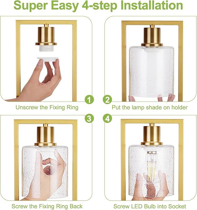 • 【Seeded Glass Shade & LED Bulb Included】Coming with A19 dimmable LED bulbs and combined with the seeded glass shade, the nightstand lamp can provide bright, warm and soft light to protect your eyes from glare of light, feel free to place it next to your sofa, bed, or reading chair.