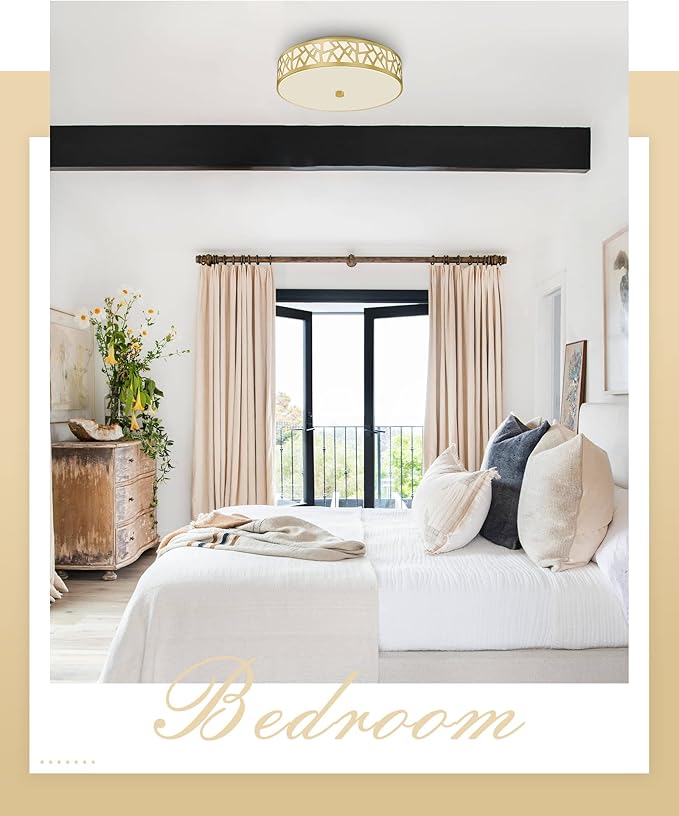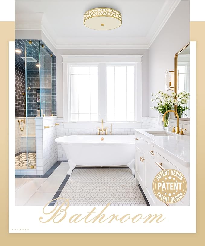 • Elegant Unique Design: Flush mount ceiling light appearance has a unique patterned metal frame and gold knob decoration which looks stylish and elegant house; the bottom is white frosted glass panels, so that the light in your house complete emanation to get better lighting effect.