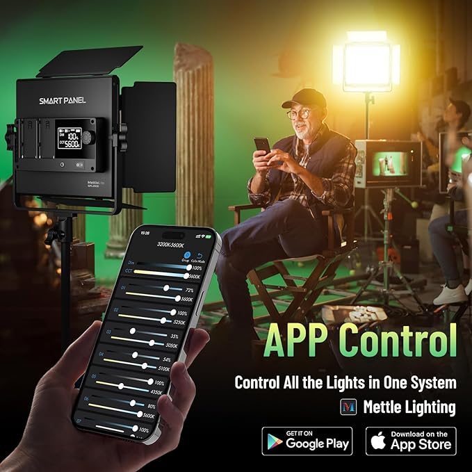 Mettlelite 2 Pack SPL210B Bi Color LED Video Light Kit with APP Control, 3200K-5600K, CRI TLCI 96+, Dimmable Photography Studio lighting with Barndoor,Diffuser, Light Stand and Carrying Case for Video