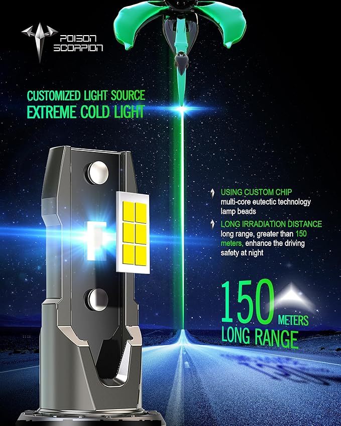 POISON SCORPION Fog Light Bulbs, 600% Brighter 6500K Cool White, 1:1 Mini Size With Cooling Fan, Plug-N-Play Easy To Install, Pack of 4