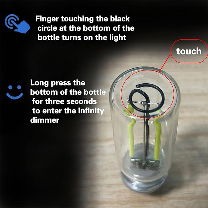 • 【Touch Control Switch Design】: The touch switch is designed at the top of the bottle, which can control the light on or off, and can also adjust the brightness. This design is very creative and also very convenient to use.