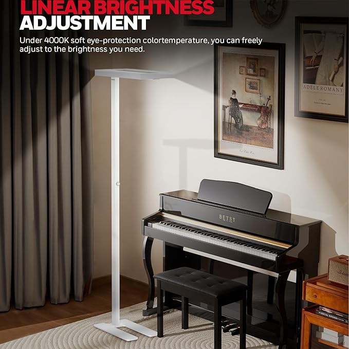 • Professional Eye Protection Reading Lamp:The tall floor lamp equipped with Sunturalux 432 full-spectrum LED lamp beads,simulating the natural sunlight lighting experience.High color rendering index of Ra(CRI>98) & 8000LM help you see every detail of the objects, reducing eye fatigue and seeing the more accurate colors.Allow you to focus on reading/learning/work, greatly improve your efficiency, reduce visual fatigue, care for your eye.