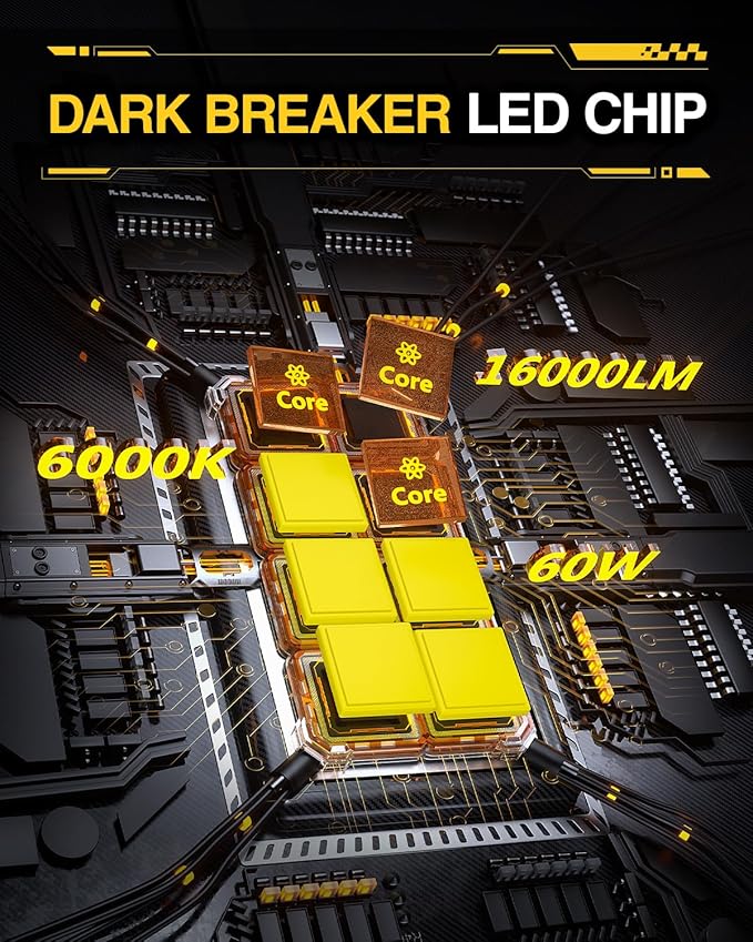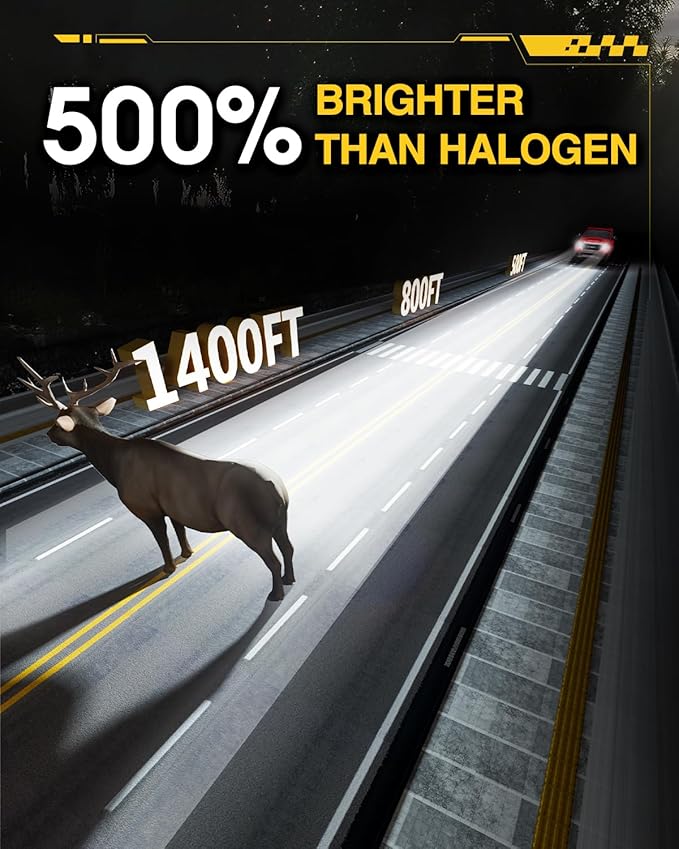 • 600% Brighter Than Halogen: Top-Automotive chips deliver 16000 LM light and 6000K cool withe lights, 500% brighter than stock bulbs.