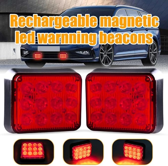• 【Strong Magnetic Base】Nrgedzam's magnetic flashing lights there are a total of 10 magnets at the base of the lamp holder (Each magnetic red light has 5 magnets) is more stable than the 3 magnets, magnets are pretty strong, which equipped with the larger size of the thick rubber suction cup that adheres firmly to the body of the trailer or any metal surface. Magnetic flashing safety lights will not fall off even when traveling at speeds of up to 80 MPH. The surface of the magnet is designed with a rubber coating to prevent any damage to the surface of the car's paint.