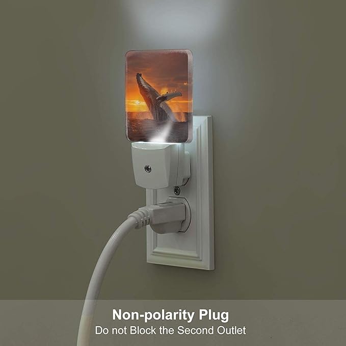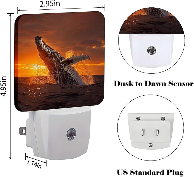 Sunset Humpback Whale Night Light,Plug Into Wall for Boys Girls Bedroom Decorative Square Night Light Lamp 0.5w Sleep Friendly