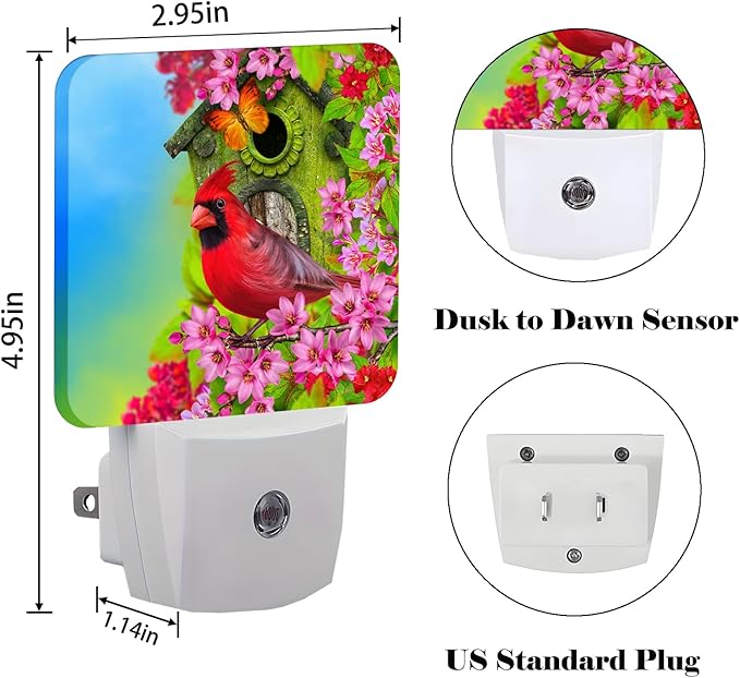 Red Cardinal Night Light,Plug-in Night Lights with Dusk to Dawn Sensor for Stairway,Hallway,Bedroom Sleep Friendly Ideal for Women/Girls/Boys Gift,0.5w