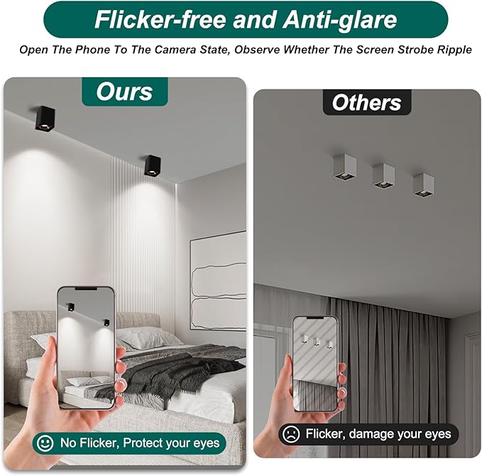 • 【Eye-Caring Design】The flush mount ceiling light features anti-glare and flicker-free illumination, creating a comfortable and safe environment for your eyes, providing soft and uniform lighting without flicker, effectively protecting the eyes. With a high color rendering index of 90+, it accurately reflects the original colors of objects, enhancing visual effects.