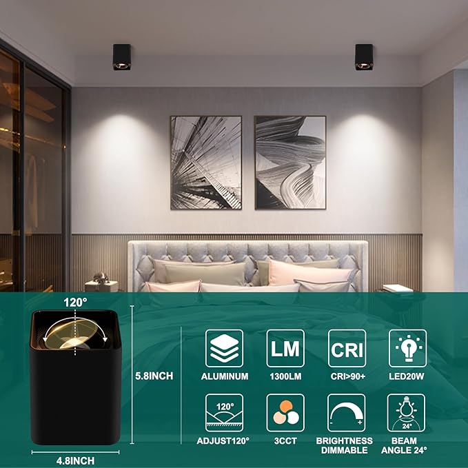 • 【Wide Application & Perfect Decoration】The white ceiling light fixture, 4.7" W x 5.9" H cylindrical shape give the 120° adjustable downlights fashion and art, perfect for Hallway, Entry, Mudroom, Stairwell, Closet, Kitchen, Dining Room, Bedroom, Living Room, also ideal for commercial areas: Bar, Cafe, Hotel etc. Whether you're looking to add a touch of sophistication to your home or simply want to upgrade your existing lighting, the cylinder ceiling spotlight is an excellent choice.