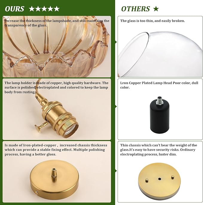 • 【High Quality Materials】The glass is carefully selected and treated to ensure that it is brightly coloured and uniform, without blemishes. The glass has a clear texture and can penetrate light very well. The metal parts are made of corrosion-resistant and oxidation-resistant materials, presenting an elegant sheen and texture.