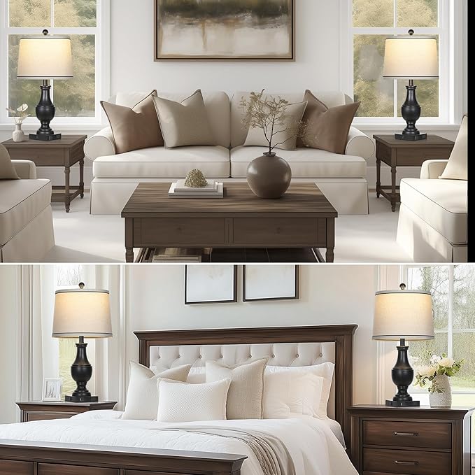 • Energy-saving 2 LED Bulbs & Eye-Friendly illumination: Rustic lamps come with complimentary 6W LED bulbs that emit a warm, cozy light, ideal for reading, studying, working, or relaxing and providing a warm white light at 2700K and 800 lumens without any flickering or buzzing. The farmhouse lamps offer safe, eye-protective lighting while enhancing the comfortable atmosphere of home!