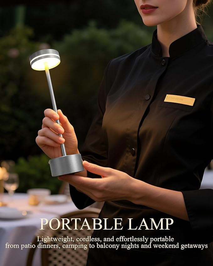 • 【Touch Control & 3-Color Dimmable Light】Easily adjust lighting with touch control—just tap to turn on/off or long press change brightness (5%-100%). Featuring three color temperatures (3000K warm, 4000K neutral, 6500K cool), this Cordless lamp suits different needs, from reading and working to nightlight or cozy ambiance. The flicker-free, eye-caring LED reduces eye strain, making it perfect for bedrooms, offices, or dorms