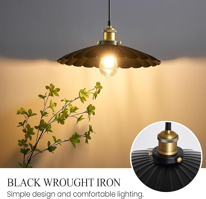 • Retro industrial design pendant light: The plug in pendant lights paired with a fully metal pleated lampshade; Covered with a bright and durable varnish; Bringing home for a comfortable lighting atmosphere and desired look