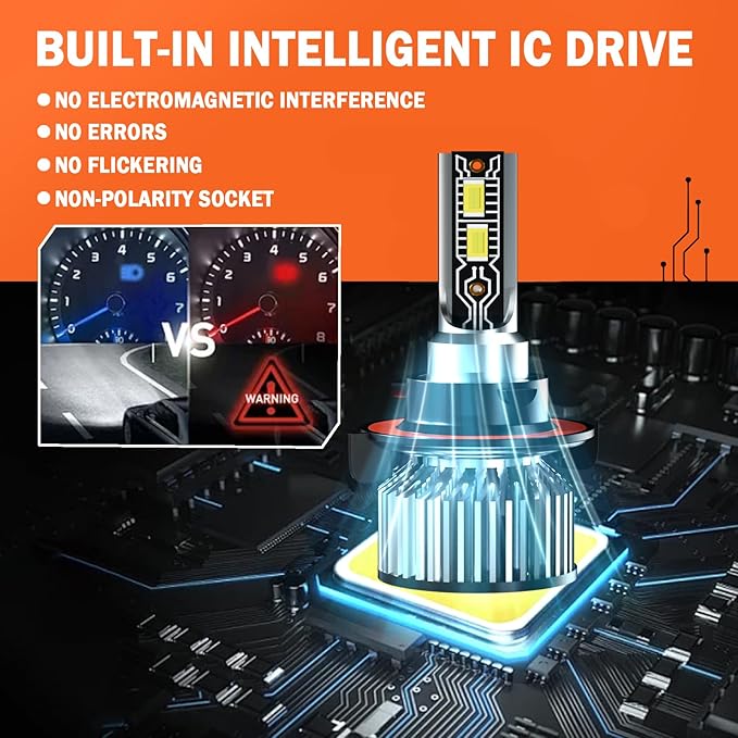 • Enduring Illumination: Experience the brilliance of up to 40000 lumens from each pair of bulbs, offering long-lasting clarity on the road. Plus a built-in smart chip for fast response time