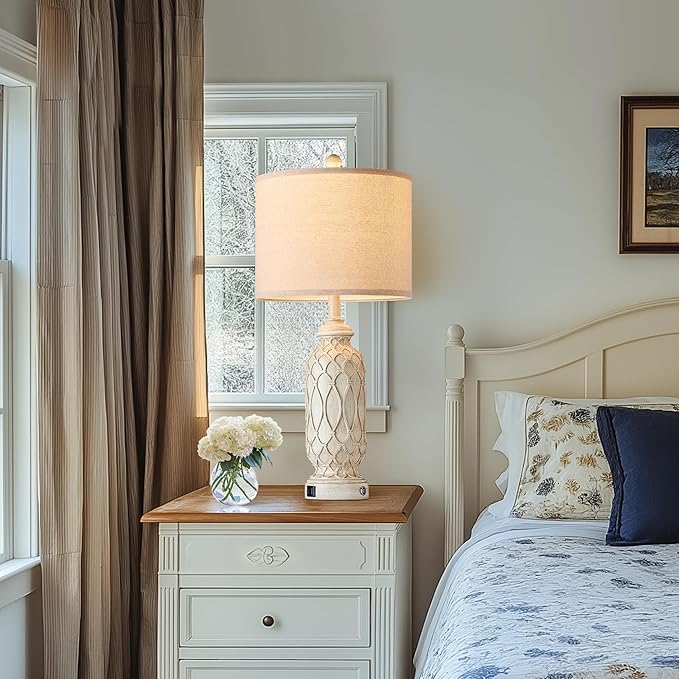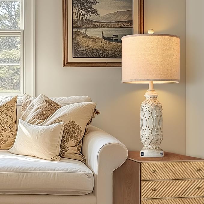 • Farmhouse Design: Featured with resin lamp body and linen lampshade, farmhouse table lamp creats classic, vintage and rustic atmosphere. You can put them in your living room, bedroom, dining room or any room you like
