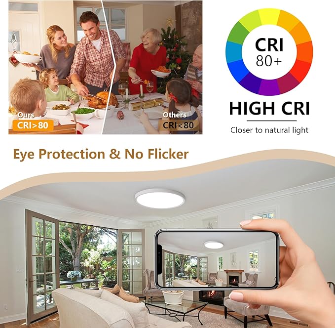 • 【Excellent Lighting Performance】 Our led ceiling light fixtures built-in light filtering technology LEDs as its side light source, while the Nano soft light coverage to provide 360°wide uniform lighting, providing you with a soft, even and non-stinging light , and illuminating a larger area. No flickering, no buzzing.