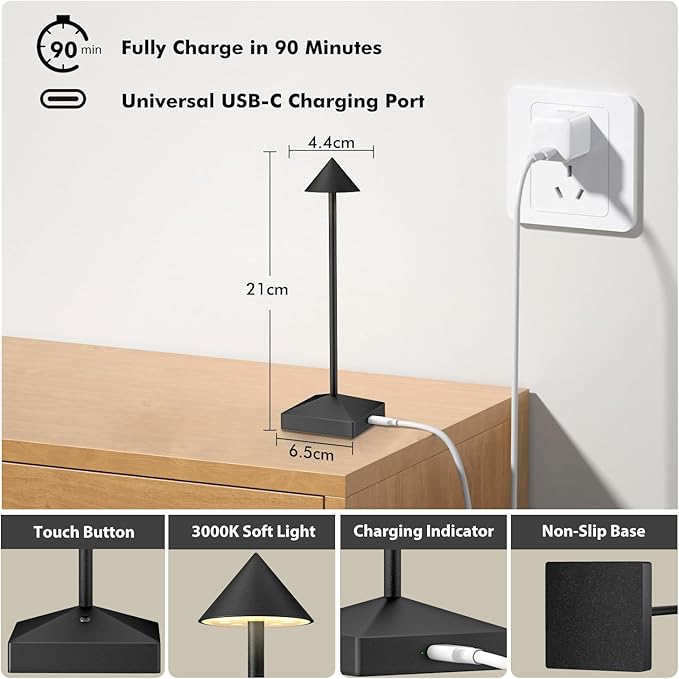 • 【Rechargeable & Portable Small Lamp】We have built a rechargeable battery in the cordless lamp, which can help you save the cost of purchasing AA batteries.Closed structure plastic lamp holder, matte powder coated cast aluminum alloy lamp body.With the multifunctional features as portable, rechargeable, durable, it's the best table lamp with function and decoration for both indoor and outdoor scenes.