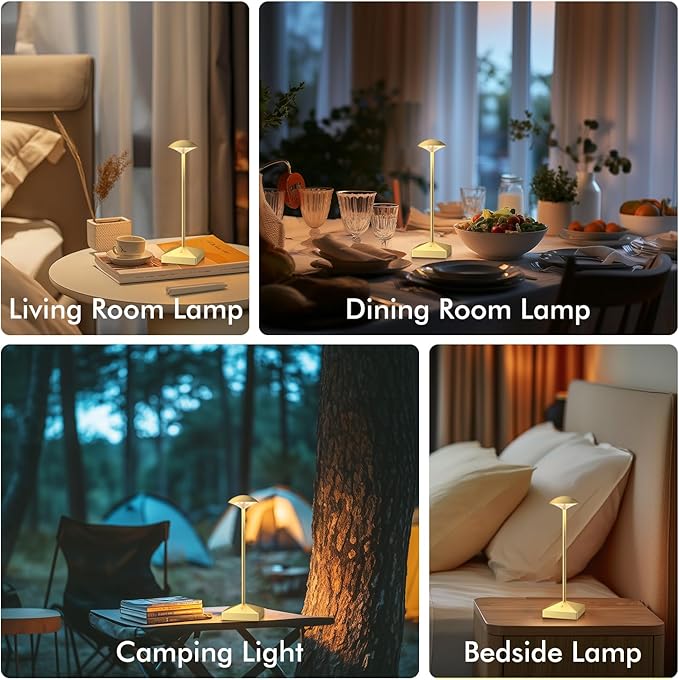 • 【Rechargeable & Portable Small Lamp】We have built a rechargeable battery in the cordless lamp, which can help you save the cost of purchasing AA batteries.Closed structure plastic lamp holder, matte powder coated cast aluminum alloy lamp body.With the multifunctional features as portable, rechargeable, durable, it's the best table lamp with function and decoration for both indoor and outdoor scenes.