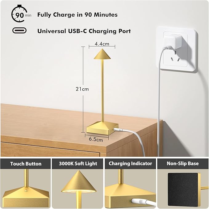 • 【Rechargeable & Portable Small Lamp】We have built a rechargeable battery in the cordless lamp, which can help you save the cost of purchasing AA batteries.Closed structure plastic lamp holder, matte powder coated cast aluminum alloy lamp body.With the multifunctional features as portable, rechargeable, durable, it's the best table lamp with function and decoration for both indoor and outdoor scenes.