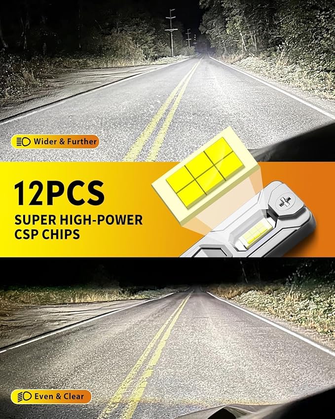 Over 70,000 Hours Lifespan: Constructed from premium materials like aviation-grade aluminum and a substantial copper baseboard, these 9005 bulbs provide over 70,000 hours of consistent, stable illumination. A high-speed cooling fan effectively dissipates heat, reducing the need for frequent replacements