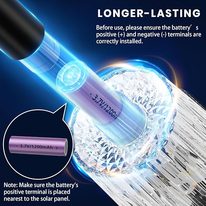 • 【Upgraded 1200mAh Battery & Long Lasting lighting】 Unlike ordinary ni-mh batteries, we use more reliable and larger capacity 4.44Wh 1200mAh Lithium-ion battery. The solar panels convert sunlight into electricity and store it in the battery during the day, and the led lights automatically illuminate at night. Our upgraded outdoor pathway lights solar powered only need to be exposed to sunlight for 6-8 hours to provide up to 28 hours of bright lighting time.