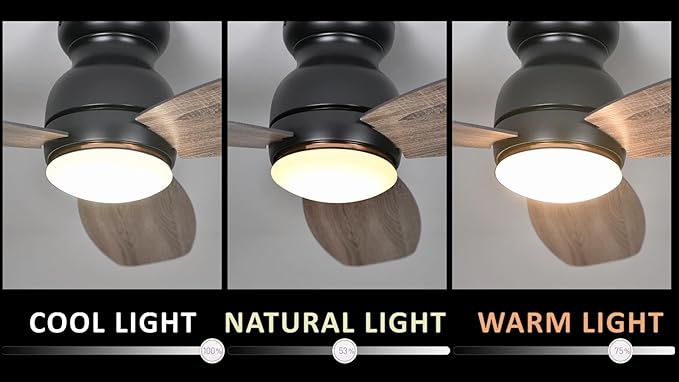 • 【Dimmable LED Light】: The light and fan can be controlled separately. This black ceiling fan includes 3 types of light: 4000K for the cool light, 3000K for the full light and 2700K for the warm light. The lights of our low profile ceiling fan are dimmable from 1% - 100%. you can satisfied your needs at different scenarios. And you can also group the LED light with fan and/or other smart devices to control multiple devices with one touch on the mobile phone or one voice command.