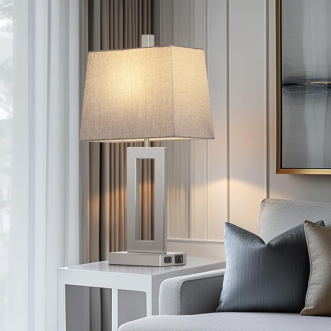 • Modern Design - Classic silver decorative pole design with trapezoidal gray fabric lampshades gives the bedroom lamps a gorgeous look. Perfect for bedrooms, living rooms, end tables, offices, hotels, and guest rooms as a daily decor.