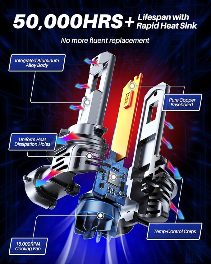 • Durable Working Time: Full alumium Alloy, built-in a 15,000 RPM turbo cooling fan and temp control chip, offering long-lasting reliability over 60,000 hours of those h11 led fog lights